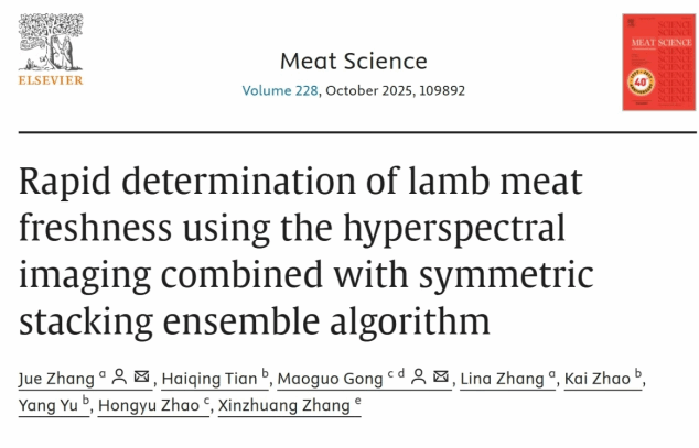 團(tuán)隊(duì)成員張玨博士在畜牧業(yè)領(lǐng)域的一區(qū)Top期刊《Meat Science》上發(fā)表題為《Rapid determination of lamb meat freshness using the hyperspectral imaging combined with symmetric stacking ensemble algorithm》的研究成果。該研究面向肉類高光譜成像智能分析的兩大難點(diǎn)開展攻關(guān),在保持組織結(jié)構(gòu)完整的前提下實(shí)現(xiàn)羊肉新鮮度的可靠無損檢測(cè),并在多指標(biāo)融合建模中提升可解釋性與生物學(xué)關(guān)聯(lián)性。該研究將高光譜成像與人工智能深度融合,提出了關(guān)鍵波段自適應(yīng)提取與多模型特征融合機(jī)制,構(gòu)建了對(duì)稱堆疊集成學(xué)習(xí)框架SSEL,發(fā)現(xiàn)了 620 至 630 nm 光譜峰值紅移與肌紅蛋白 OxyMb 向高鐵肌紅蛋白 MetMb 轉(zhuǎn)變密切相關(guān),該區(qū)域具有重要生物標(biāo)志潛力,可用作評(píng)估儲(chǔ)存期間羊肉腐敗程度的關(guān)鍵特征波段。SSEL 集成學(xué)習(xí)架構(gòu)融合多類基學(xué)習(xí)器與元學(xué)習(xí)器,緩解高維高光譜數(shù)據(jù)的欠擬合與過擬合問題,在 TVB-N、TVC、pH、L* 等新鮮度指標(biāo)預(yù)測(cè)中,R2 提升約 5% 至 12%,RMSEP 降低約 15% 至 28%,整體性能優(yōu)于傳統(tǒng)單一建模方法。同時(shí)提出融合光譜動(dòng)態(tài)變化與理化指標(biāo)的雙通道時(shí)間序列建模策略,并引入基于多目標(biāo)優(yōu)化的儲(chǔ)存時(shí)間預(yù)測(cè)機(jī)制,實(shí)現(xiàn)對(duì)羊肉儲(chǔ)存周期的準(zhǔn)確評(píng)估。該技術(shù)貫通數(shù)據(jù)采集、特征波段自適應(yīng)提取、集成建模與分子機(jī)制層面的可解釋性分析,在肉類質(zhì)量安全監(jiān)測(cè)、冷鏈運(yùn)輸管理、智能包裝檢測(cè)與食品溯源等場(chǎng)景具有顯著應(yīng)用價(jià)值。