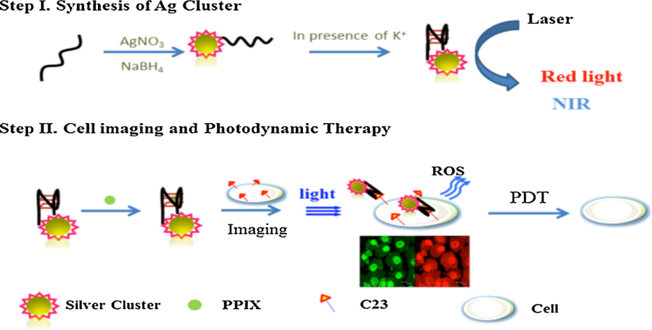 愛軍教授團隊一直致力于特殊結構DNA設計分析及應用方面的研究。近期,通過指數富集的配體系統進化技術(SELEX)篩選出了AS1411,制備了以水溶性AS1411 G-四鏈體為模板的近紅外熒光銀納米團簇能負載光敏劑(原卟啉),實現了對癌細胞的熒光探針原卟啉細胞成像、光治療和近紅外光熱治療的協同作用,對癌癥診斷和治療方面有潛在的應用價值。其研究成果“Progress in cancer drug delivery based on AS1411 oriented nanomaterials”在納米醫藥領域Top期刊《Journal of Nanobiotechnology》上發表。全文鏈接:https://doi.org/10.1186/s12951-022-01240-z