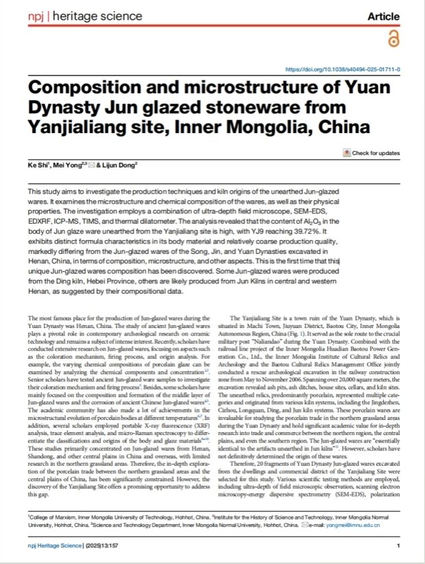 5月12日,我校科學技術史研究院詠梅研究員團隊在文化遺產領域權威期刊《np...